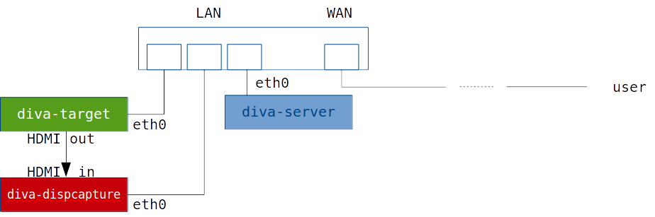 All diva components are in local network. Only diva-server interacts with a user through the internet. Of course, the user in LAN is also available.